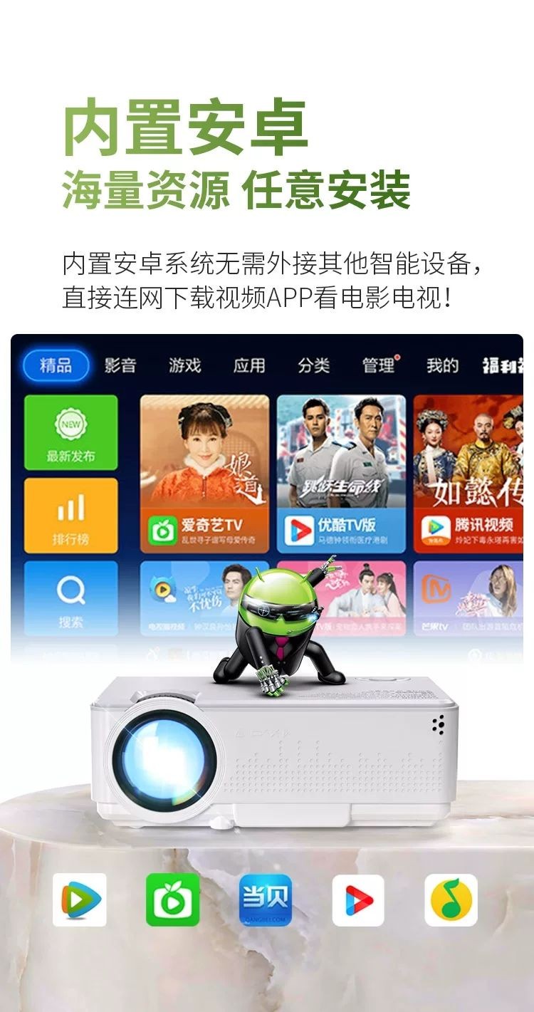 瑞视达M1S 手机投影仪家用全高清卧室客厅100英寸电视智能投屏投影机小型便携式迷你墙上3D家庭影院 基础款:不可连WIFI或手机,仅接电脑用 家用投影仪