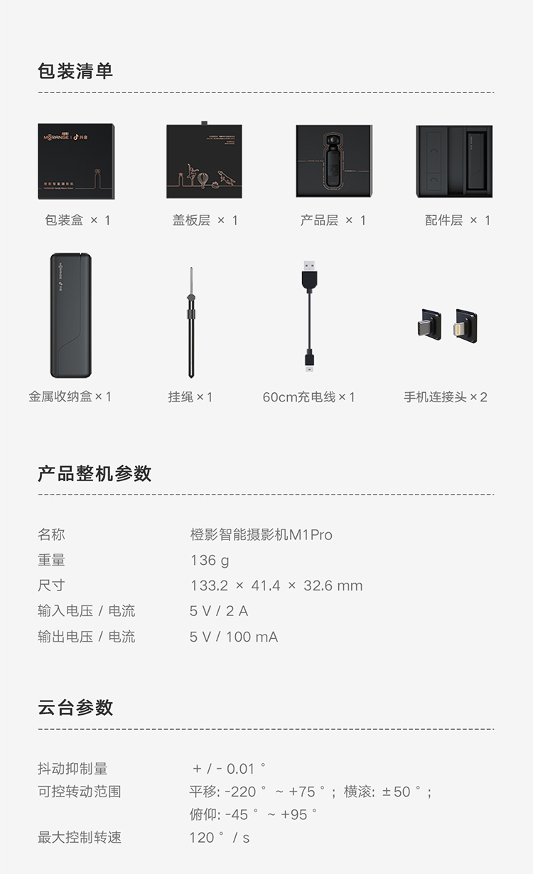 橙影抖音智能摄影机 口袋云台相机vlog运动摄影机 三轴云台防抖 智能追踪 美颜运动 拍剪一体素砂红