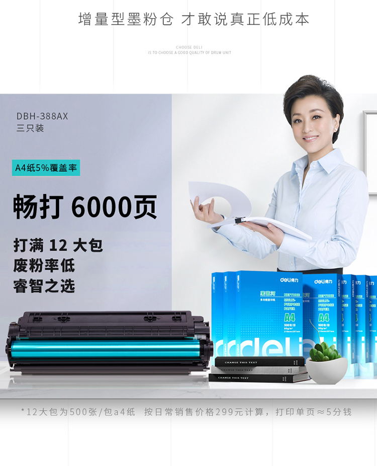 得力 deli DBH-388AX3黑色硒鼓3支装 88A大容量打印机硒鼓 适用惠普P1007 P1106 M1136 M1213nf M1216nfh