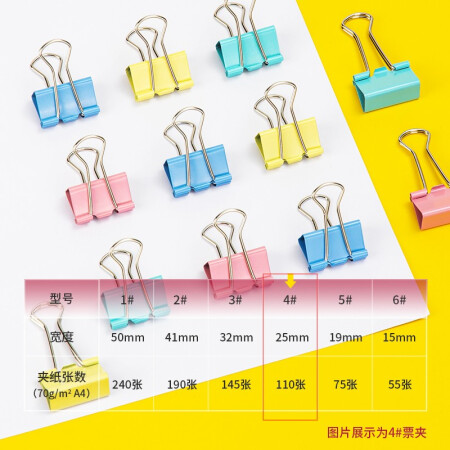 得力 deli 96只25mm彩色长尾夹票夹 4#金属燕尾夹票据夹子 办公用品 33425